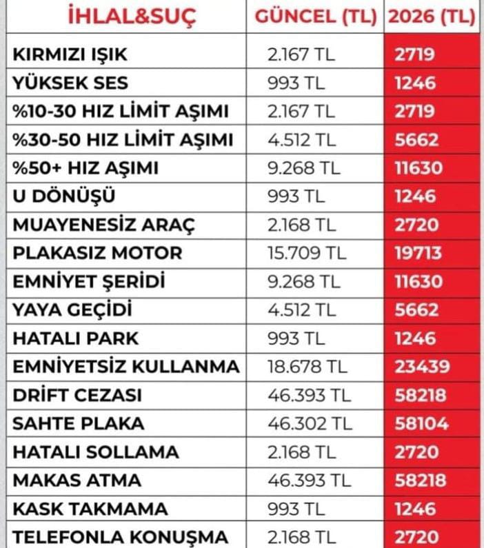Yeni cezalar, 2026 yılı itibarıyla yürürlüğe girecek.