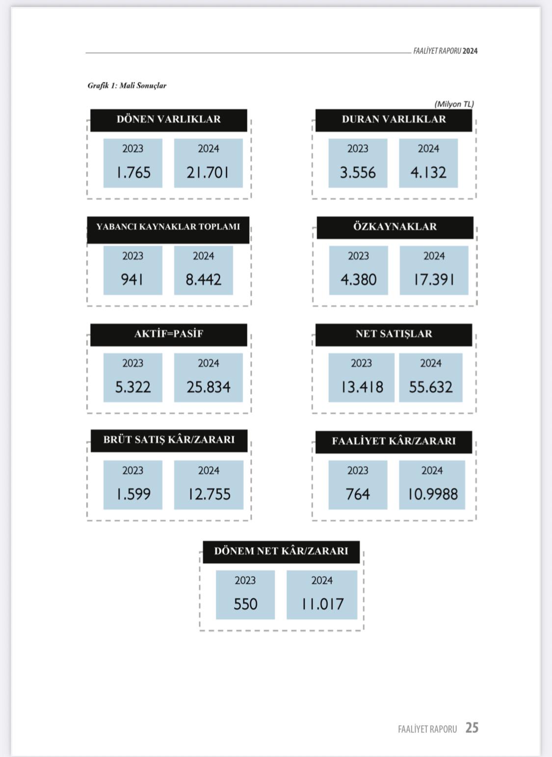 Faaliyet kârı tarafında da belirgin bir sıçrama yaşandı. 2023 yılında 764 milyon 249 bin 781 TL olan faaliyet kârı, 2024 yılında 10 milyar 998 milyon 289 bin 800 TL’ye yükseldi.