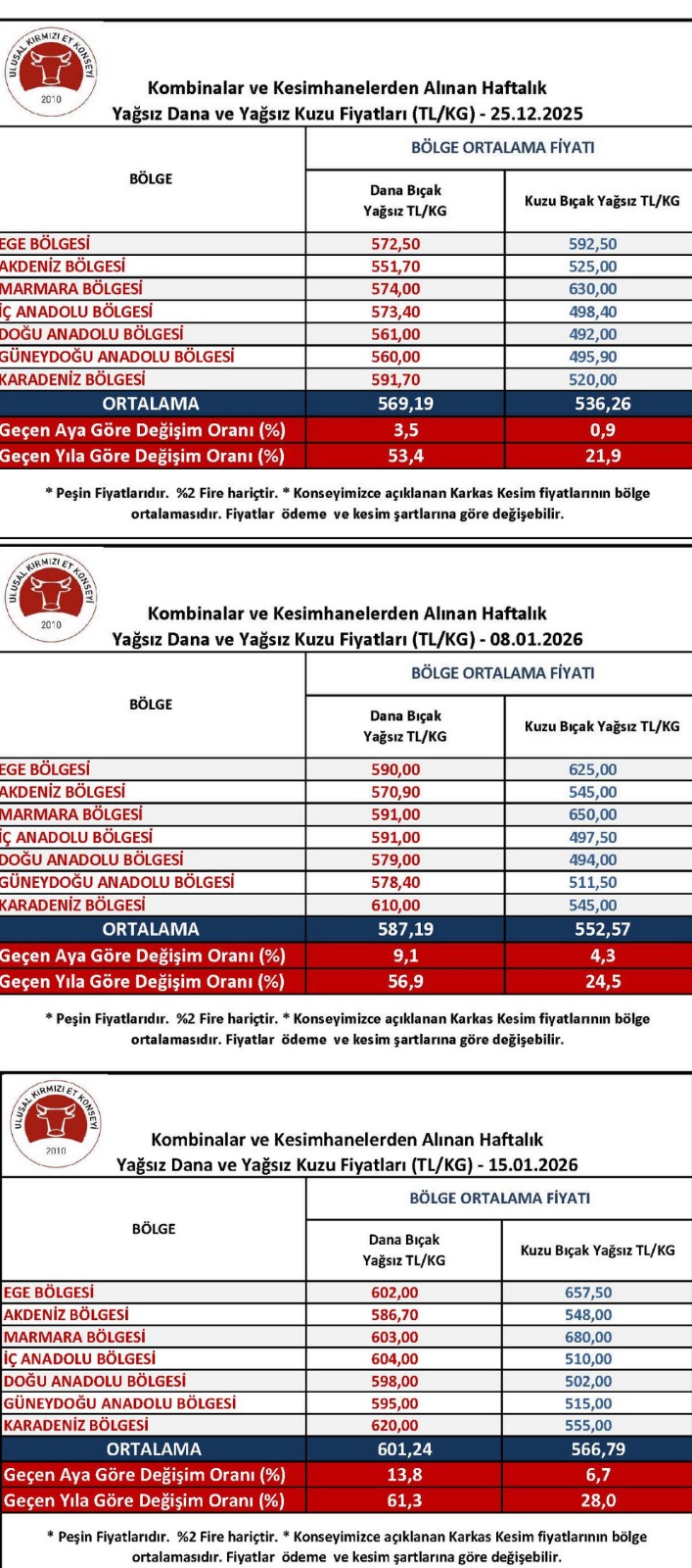 Kombina ve kesimhanelerden gelen son verileri paylaşan Gürer, fiyat artışlarının alarm verdiğini belirterek şunları söyledi: