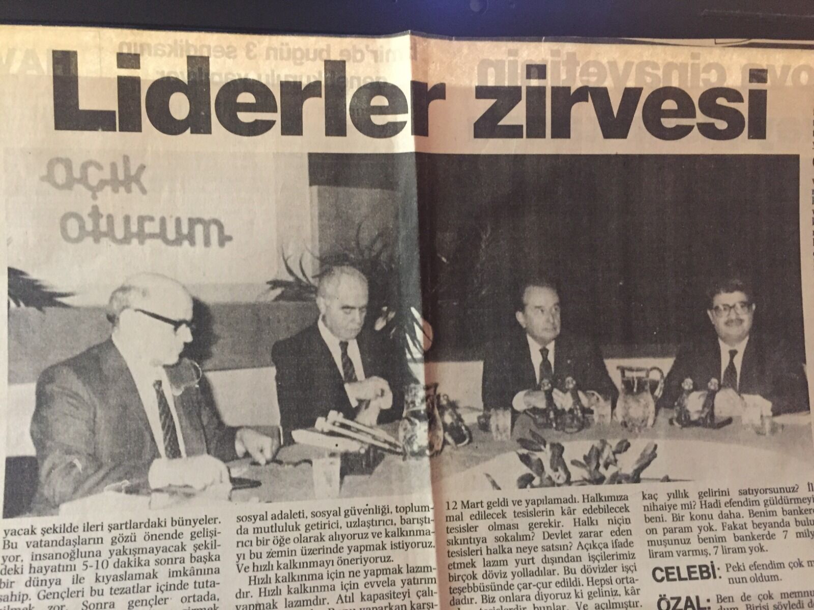 Askeri darbe günleriydi. 6 Kasım 1983 seçimlerine giren 3 siyasi parti lideri, seçimlerden 14 gün önce TRT’de açık oturuma çıktı. Anavatan Partisi Genel Başkanı Turgut Özal, Halkçı Parti Genel Başkanı Necdet Calp ve Milliyetçi Demokrasi Partisi Genel Başkanı Turgut Sunalp, ülke sorunlarını tartışabildi. Köprü ve Otoyolların satışı ilk kez bu programda tartışıldı, HP Genel Başkanı Necdet Calp’in “sattırmam”, ANAP Genel Başkanı Turgut Özal’ın “bal gibi satarım” sözleri tarihe geçti.