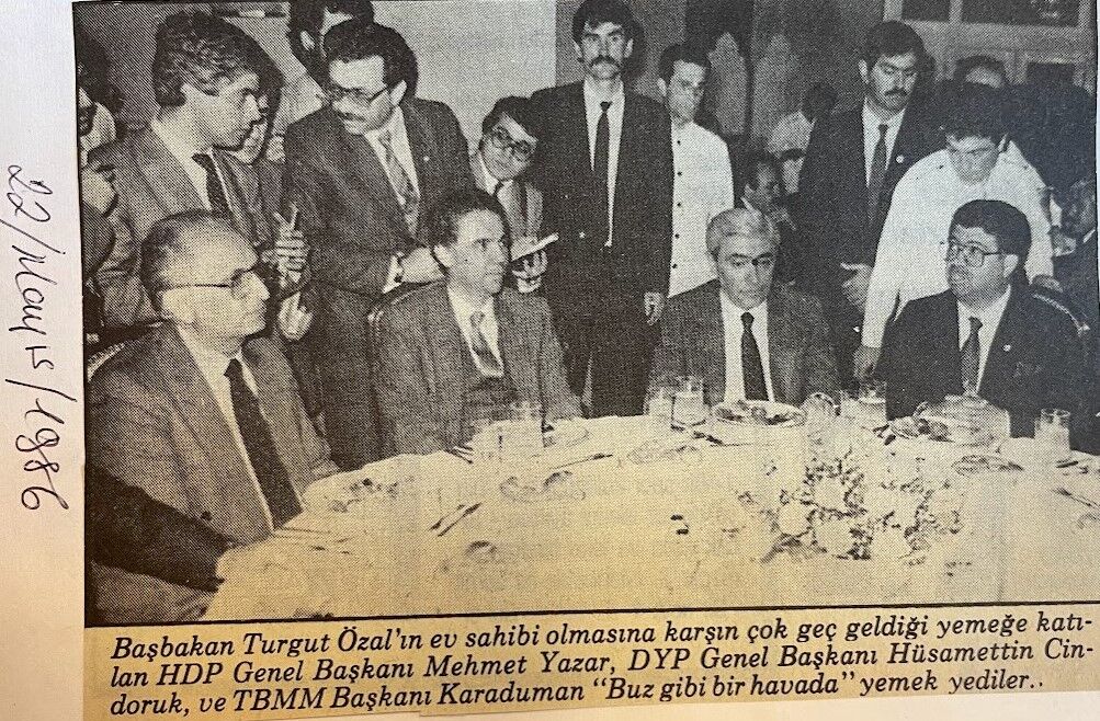 Başbakan Turgut Özal, Doğru Yol Partisi Genel Başkanı Hüsamettin Cindoruk, Hür Demokrat Parti Genel Başkanı Mehmet Yazar ve Meclis Başkanı Necmettin Karaduman’ı akşam yemeğine davet etti. Gece boyunca sohbet ederek ülke sorunlarını tartıştılar.