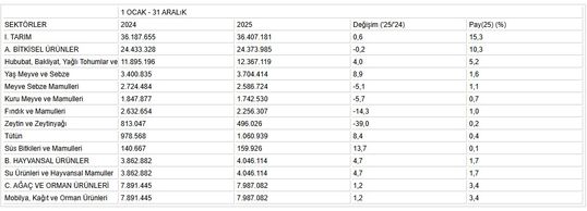 Bu rakamlar, Türk tarım sektörünün ihracatta ne denli güçlü ve çeşitliliği yüksek olduğunu bir kez daha ortaya koyuyor.