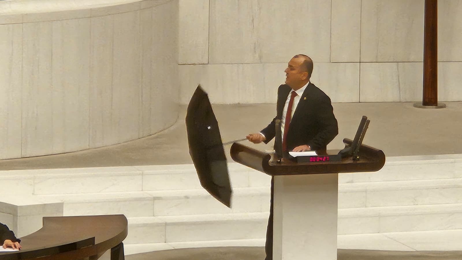Aygun, konuşmasına “Bugün meclise şemsiye ile geldim” diyerek başladı ve ülke genelindeki aşırı kuraklık ve sıcaklık tehdidine dikkat çekti. “Yağmur yok, kar yok. Önümüzdeki tehlike büyük. Türkiye büyük bir iklim kriziyle karşı karşıya. Yanı başımızda İran bu krizi daha ağır yaşıyor. Bizde ise acilen bir plan yok” dedi.